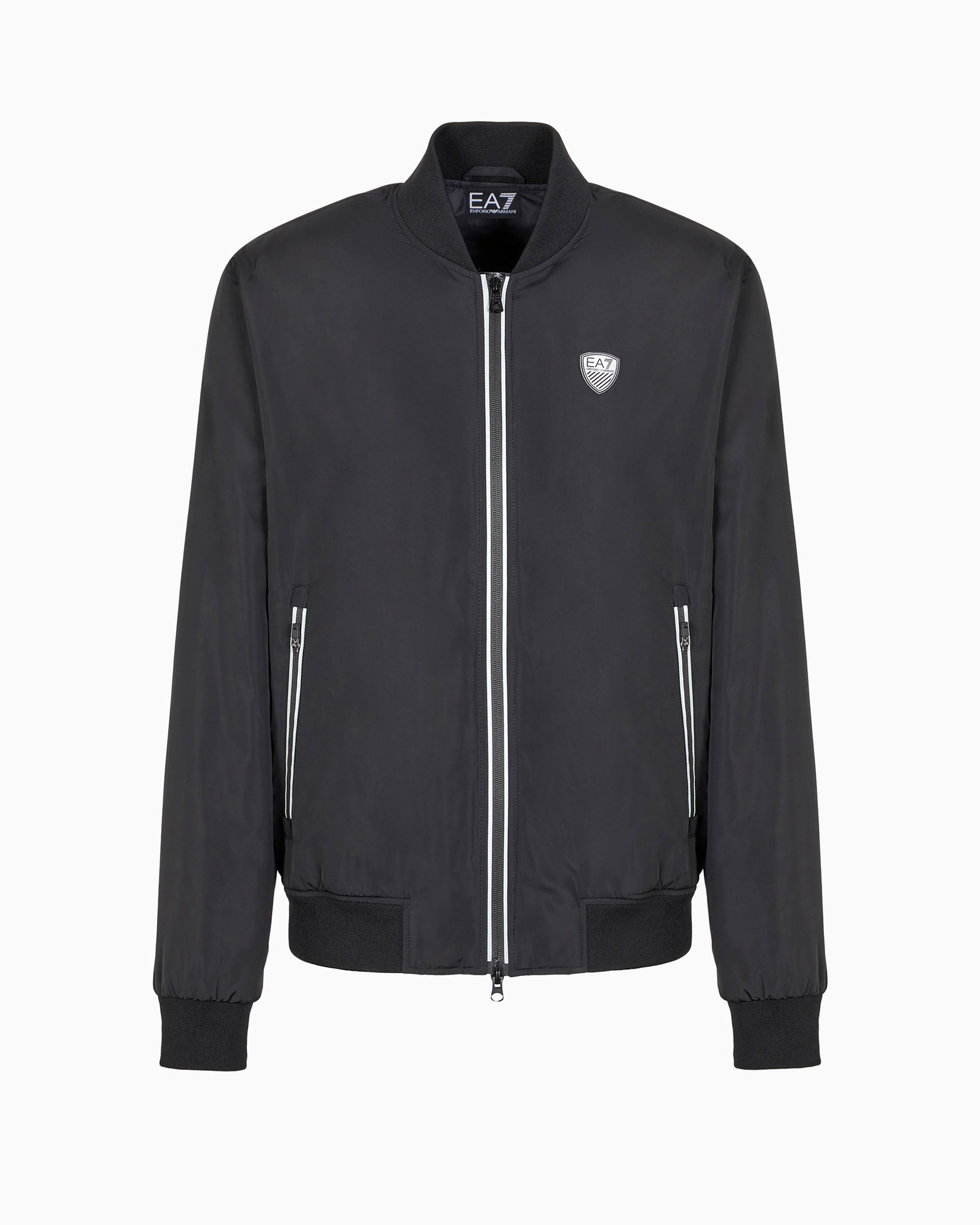 COMPOSITION: 98% Polyester, 2% elastane DESCRIPTION: Regular fit Knitted baseball collar Zip closure Long sleeves Two front pockets Shield patch with EA7 logo